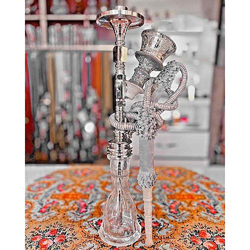 قلیان کامل برنجی شمش دو مرتبه، آبکاری سفید، با گارانتی 10 سا...
