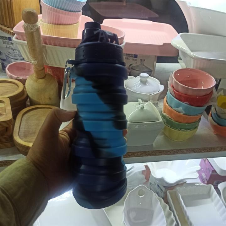 قمقمه مدل سیلیکونی تاشو NEW 01 گنجایش 0.5 لیتر بسیار سبک، بدون موادشیمیایی، بدون مزه و بو، قابل شستشو در ماشین ظرفشویی و بسیار انعطاف پذیر است. ارتفاع قمقمه قابل تنظیم هست در حالت بسته 300 میل گنجایش و در حالت باز 500 میلی لیتر گنجایش دارد. این محصول نشتی نداشته و برای نوشیدنی سرد و گرم قابل استفاده است. این محصول را به راحتی میتوانید داخل کیف گذاشته یا از کیف یا کوله آویزان کنید.