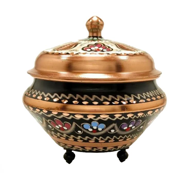 قندان میناکاری مسی طرح پایه دار درب دار کد 093 -