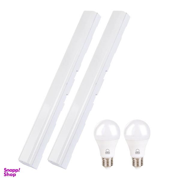 محتوی دو عدد لامپ حبابی 10w پایه E27 دو عدد چراغ خطی لاینر 40w