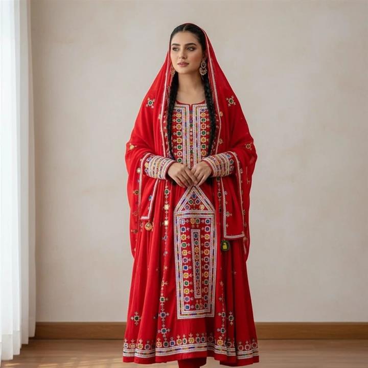 لباس بلوچی چرخ دوز آینه اصلی با دست در رنگبدی