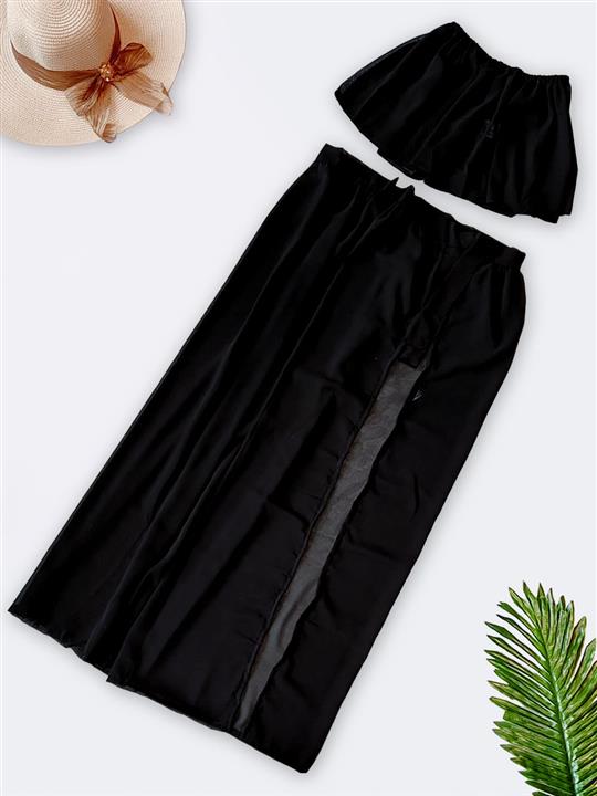 لباس رومایو دو تکه زنانه مشکی رنگ حریری بالاتنه