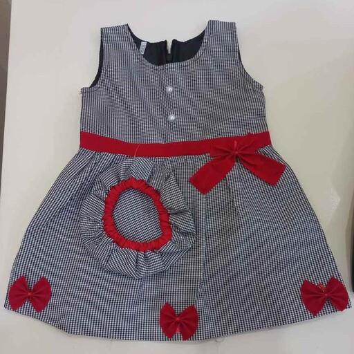 لباس مجلسی دخترانه آستر دار رنگ طوسی با پاپیون قرمز همراه کلاه