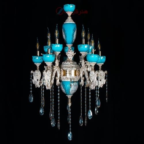 لوستر سرامیک کریستال مدل جدید، کار شده با سرامیک به رنگ فیروزه ای چشم نواز
