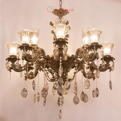 لوستر طرح گل کار شده با کریستال های آویزی و نوردهی عالی