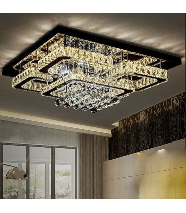 مشخصات فنی لوستر مدرن سقفی مربعی با کریستال آویز سایز 60 یا 80 Cm کد 446