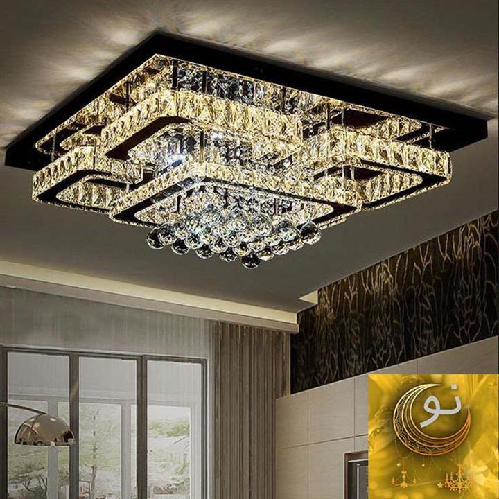 لوستر مدرن سقفی مربعی با کریستال آویز سایز 60 یا 80 Cm کد 446