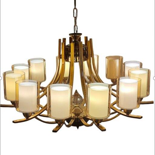 لوستر 12 شاخه کد 1060 رنگ آنتیک(برنزی) برای هال و پذیرایی با ضمانت آبکاری
