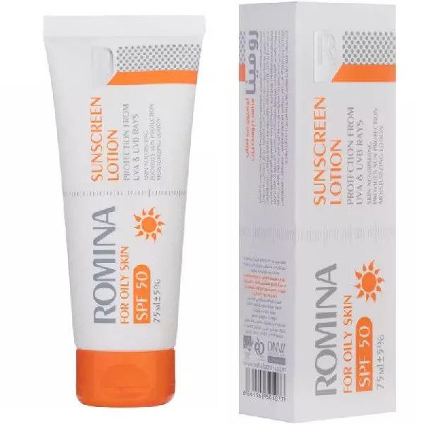 لوسیون ضد آفتاب رنگی اس پی اف 50 مناسب پوست چرب 50میل رومینا تیره