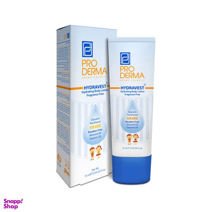 مشخصات فنی لوسیون مرطوب کننده کودک پرودرما مدل Hydravest حجم 75 میلی لیتر