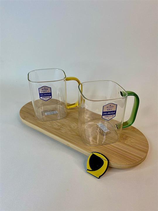 لیوان پیرکس مربع کوتاه دسته رنگی