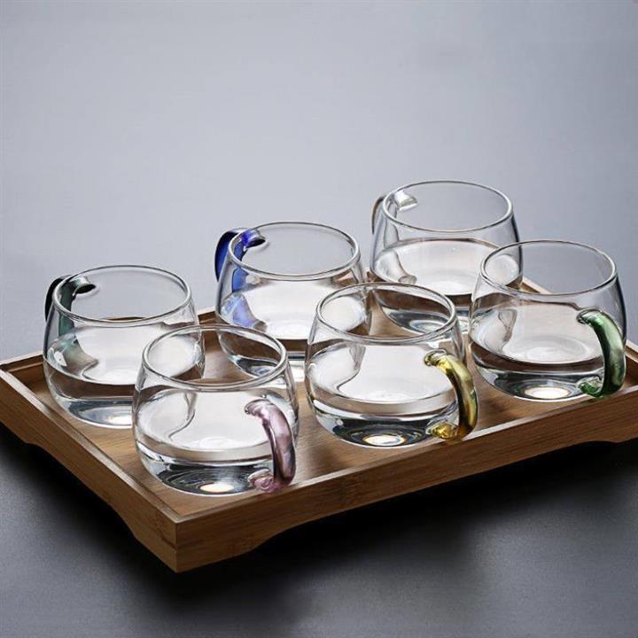 ست 6 عددی لیوان پیرکس دسته رنگی سایز بزرگ