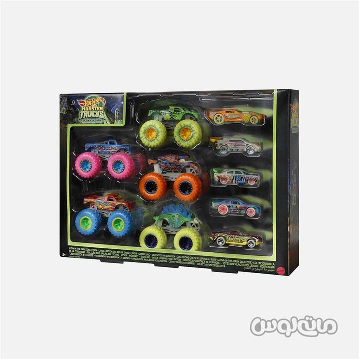 ماشین اسباب بازی مانستر تراک شبرنگ ست 10 عددی هات ویلز متل