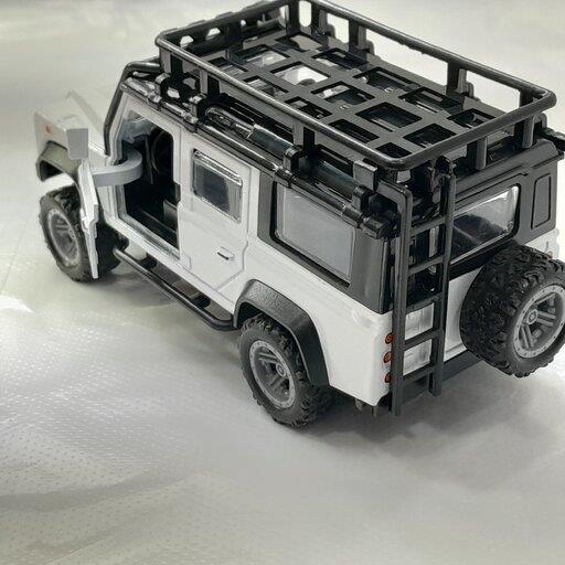 ماشین فلزی لندرور دیفندر کمپر آفرود توریستی پاگندهLANDROVER رنگ سفید درب باز شو چراغدار وموزیکال