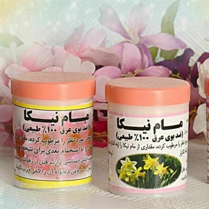 مام پودری نیکا، با رایحه گل نرگس و گل همیشه بهار، ضد تعریق، از بین برنده تیرگی نواحی تیره بدن