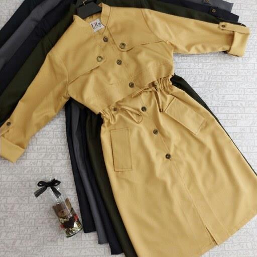 مانتو بلند پاییزه دانشجویی اداری جدید دکمه دار کتان سایز 40 تا 44 زرد