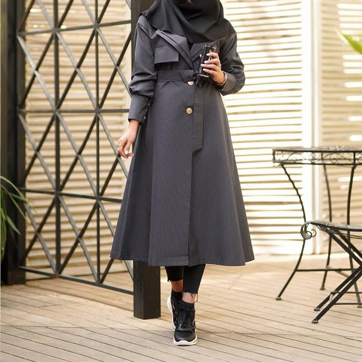 مانتو دانشجویی اداری بلند دویقه آستین مچی دیپلمات راه راه