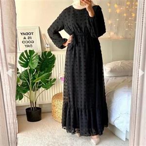 مانتو عبایی ماکسی ساحلی حریر خالدار مانتو پیراهن بلند چین دار