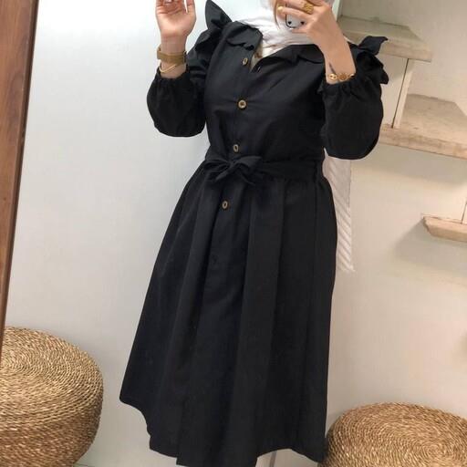 مشخصات فنی مانتو مشکی بلند عروسکی تابستانه خنک دکمه دار جلو دکمه راحت زنانه سیاه