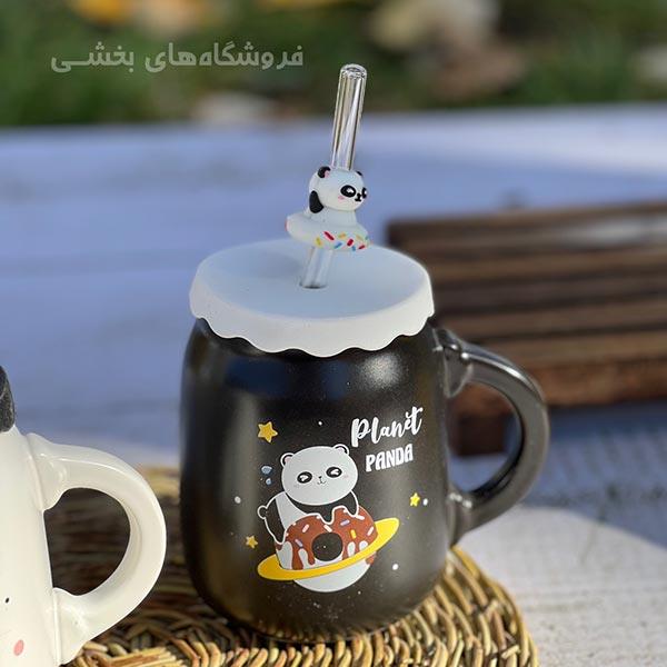 ماگ سرامیکی طرح پاندا درب سیلیکونی نی دار