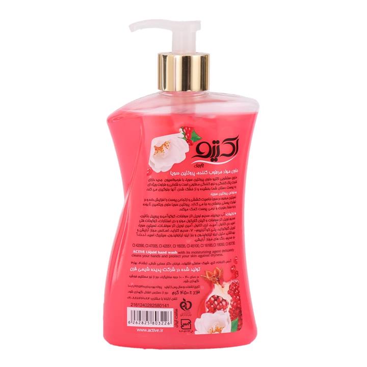 مایع دستشویی اکتیو انار و گل حاوی مواد مرطوب کننده و پروتئین سویا 450 گرم
