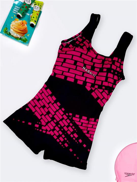 مشخصات فنی مایو پادار نیمه پوشیده زنانه با کاپ مشکی و سرخابی رنگ برای استخر نابایجی ( Nabaiji )