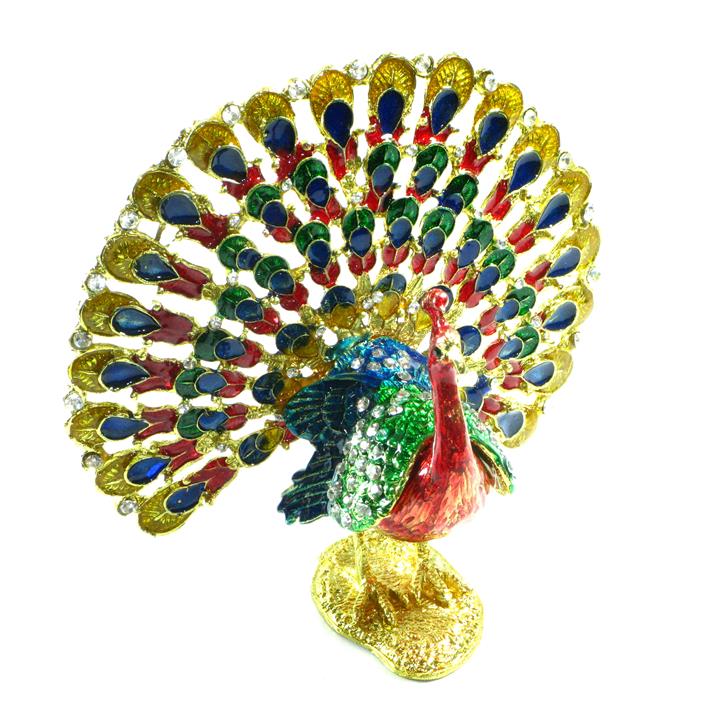 این تندیس به شکل طاووس مناسب به عنوان جای حلقه \r\nمجسمه برنزی آب طلا