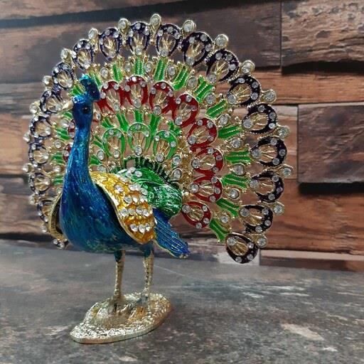 مجسمه جا حلقه ای طاووس طلایی فلزی رنگ صد در صد ثابت