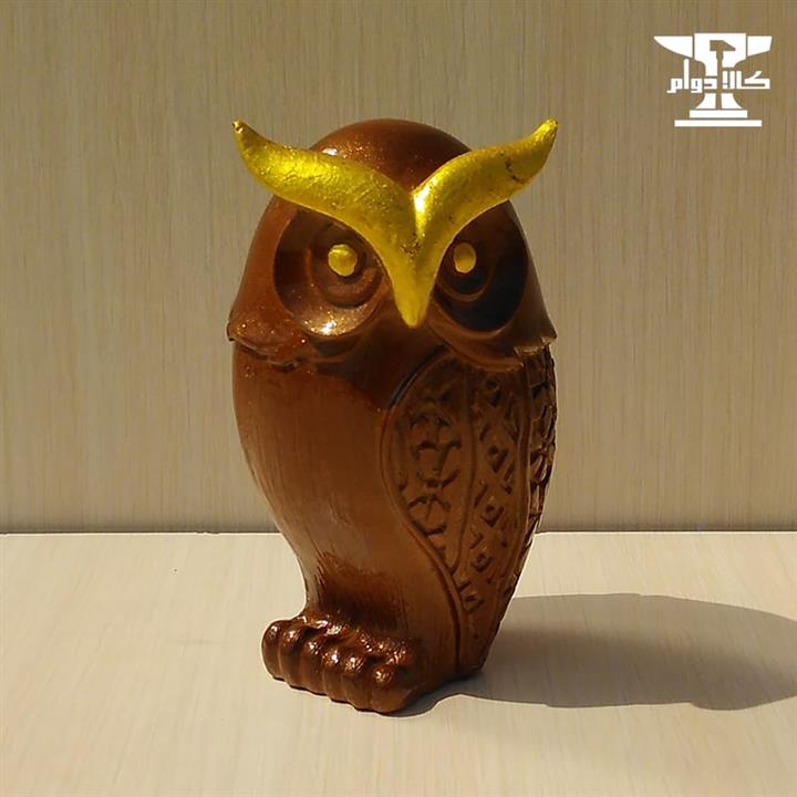 مجسمه جغد دکوری رنگ قهوه ای و طلایی متالیک