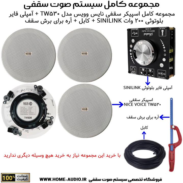 مشخصات فنی مجموعه کامل اسپیکر سقفی نایس وویس مدل NICE VOICE TW530آمپلی فایر بلوتوثی SINILINK