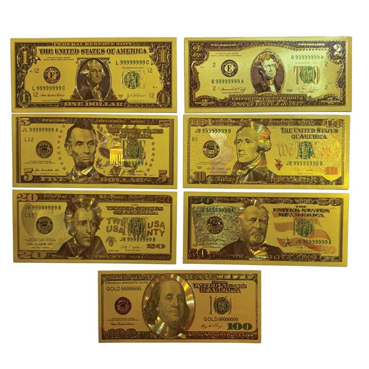 مجموعه 7 عددی اسکناس دلار آمریکا طلایی