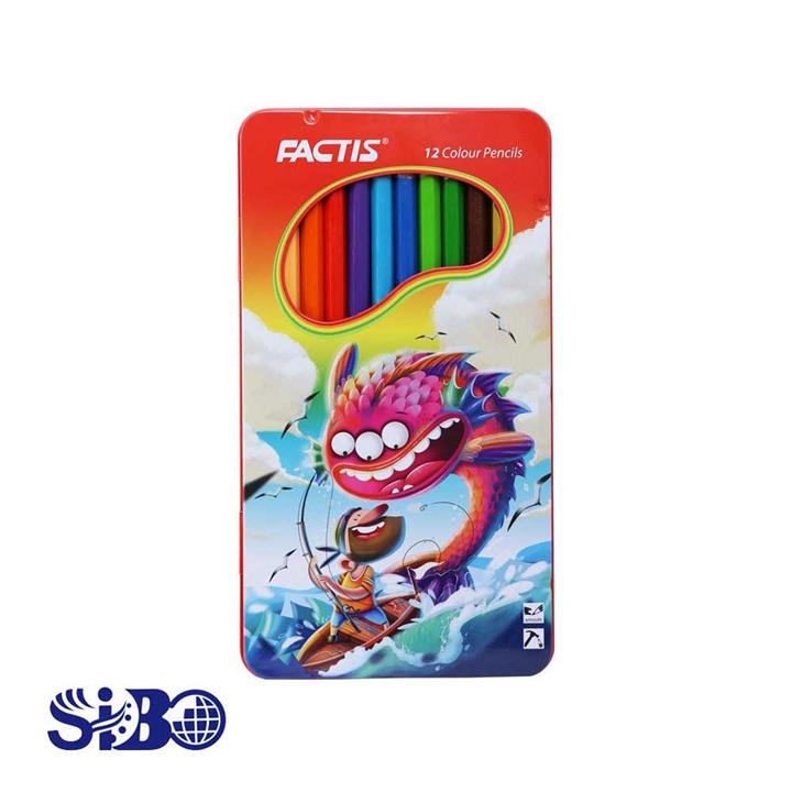 مداد رنگی 12 رنگ جعبه فلزی فکتیس | Factis