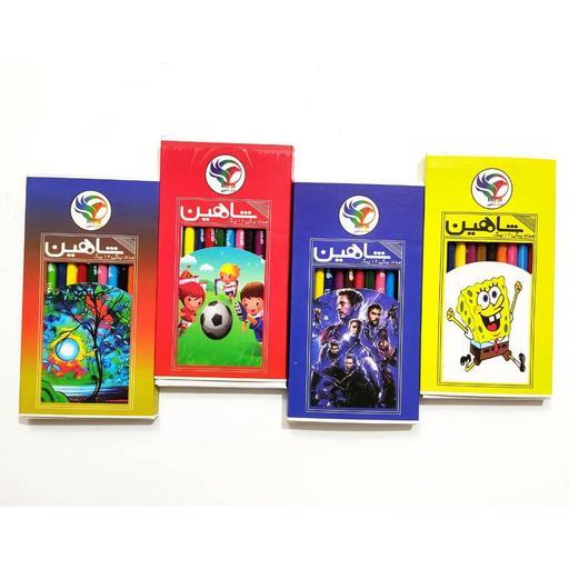 مداد رنگی روزنامه ای بلند شاهین ( برای کودکان ) 12 رنگ