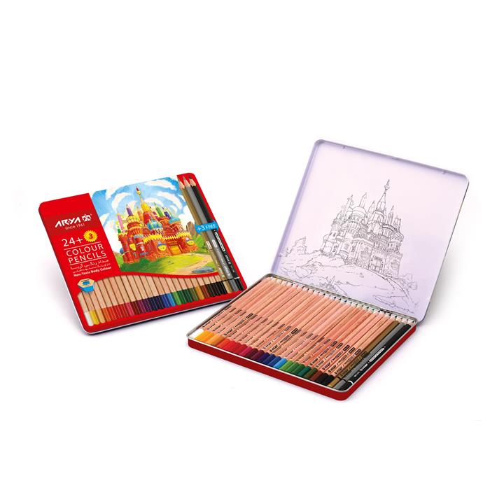 مداد رنگی 3 24 رنگ آریا جعبه فلزی طرح A02