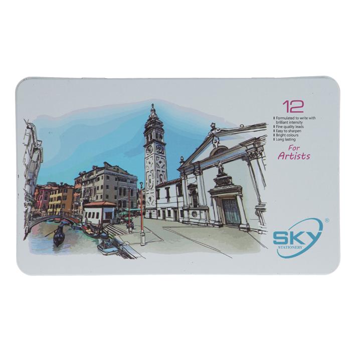 مداد رنگی 12 رنگ جعبه فلزی SKY مدل آرتیست