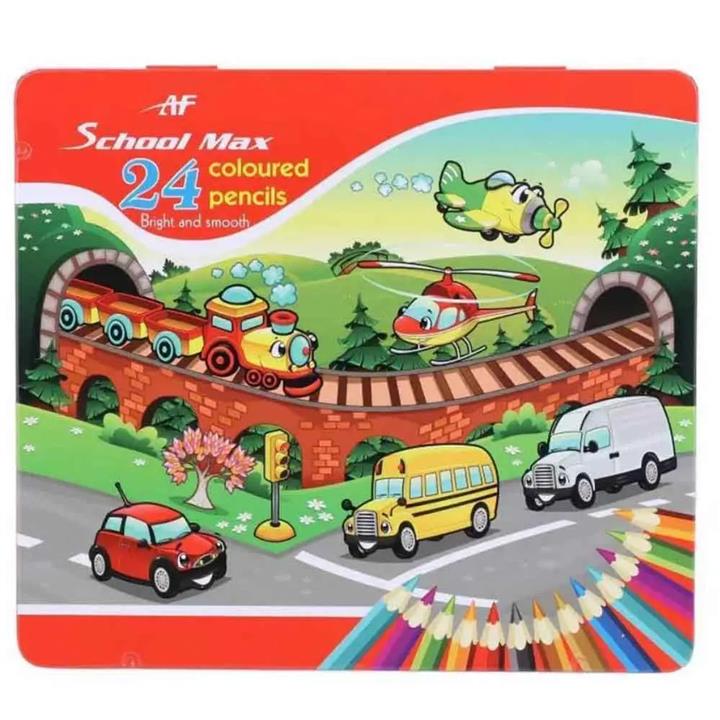 مداد رنگی 24 رنگ اسکول مکس خارجی در جه یک جعبه فلزی