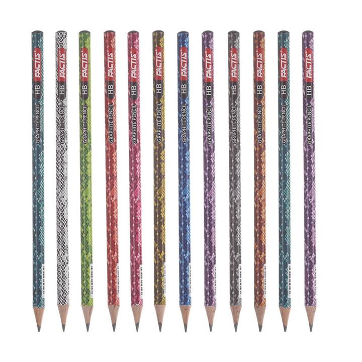 مداد مشکی فکتیس در طرح بدنه پوست ماری در 12 رنگ متفاوت
