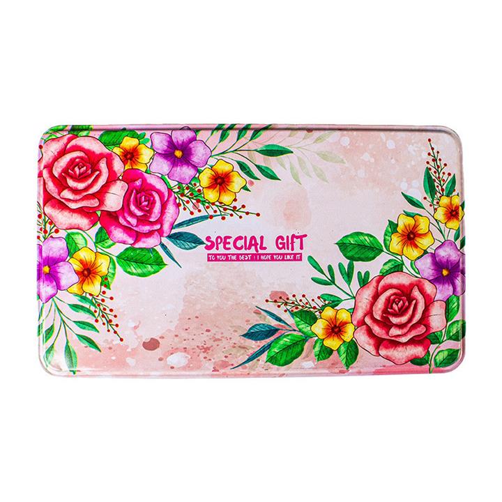 مسقطی ترکیبی جعبه فلزی هفت رنگ ترنج -750 گرم\nترکیبات : شکر، نشاسته،گلوکز، روغن، گلاب، رنگ و طعم دهنده مجاز خوراکی، اسید سیتریک، زعفران ، آب \nموارد تزئین : انواع مغز، پودر نارگیل، پودر انجیر، زرشک ، گلبرگ گل محمدی\nطعم های بهارنارنج، زعفرانی، انار، گل محمدی، سیب ترش ، انجیری \nابعاد محصول : 24×14×4\n\n