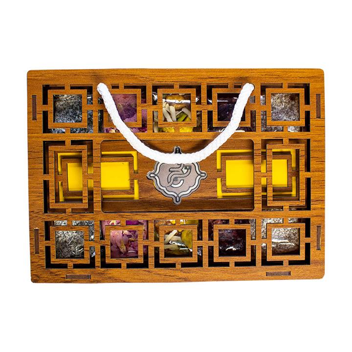 مشخصات فنی مسقطی ترکیبی جعبه چوبی ارگ حلوا مسقطی لاری ترنج - 400 گرم