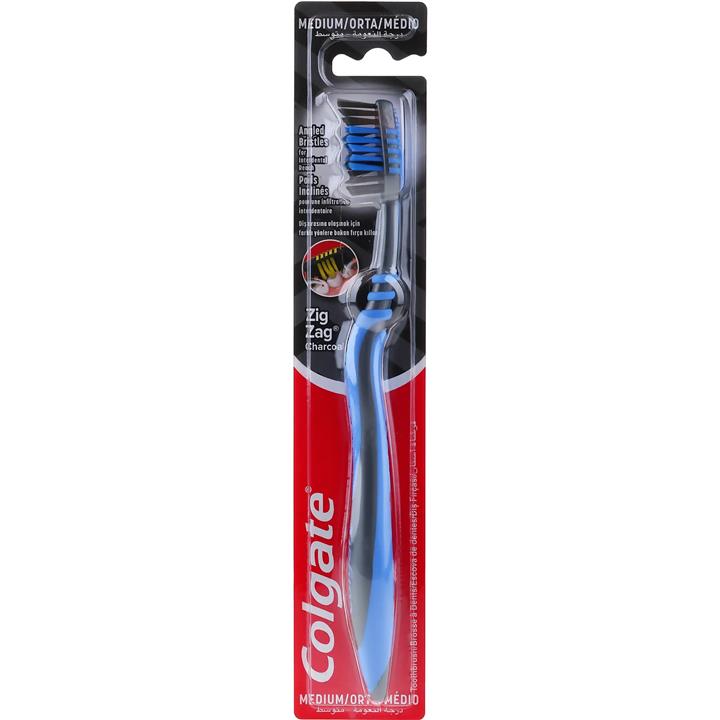 مسواک زغالی زیگ زاگی گلگیت با نرمی متوسط (آبی) Colgate Zig Zag Charcoal Medium