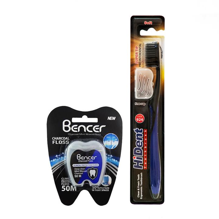 مسواک بنسر مدل Golden Charcoal با برس متوسط به همراه خمیر دندان بنسر مدل Charcoal وزن 120 گرم