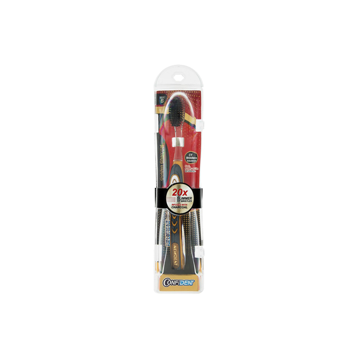 مشخصات فنی مسواک کانفیدنت مدل Golden Charcoal با برس نرم Confident Golden Charcoal Soft Toothbrush