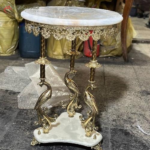 میز برنزی طرح درنا با رویه ی سنگ مرمر و حاشیه ی طرح دار، تولید شده با ظرافت و دقت بالا دارای ضمانت