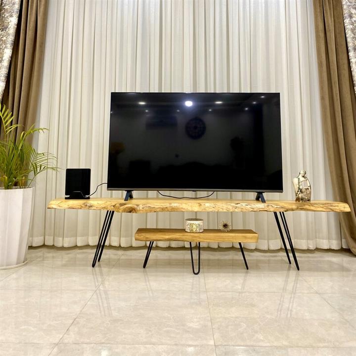 میز تلویزیون چوبی روستیک سطح چوب کاملا رزین اپوکسی