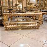میز تلوزیون دو کشو طرح طاووسی ام دی اف با طراحی جدید و بسیار زیبا و خاص با کیفیت اعلا و روکش برنز