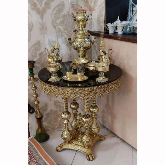 میز خاطره عرض 70 صفحه شیشه جنس آلیاژ آلومنیوم آبکاری برنج کد honar58