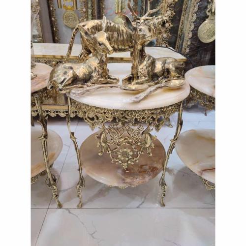 میز خاطره 2 طبقه با تاج طرح گل رز برنجی با سنگ مرمر کد 0a-367