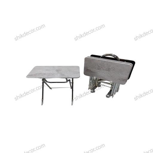 میز عسلی تاشو (چمدانی) پایه فلزی رنگ طوسی ابر و بادی