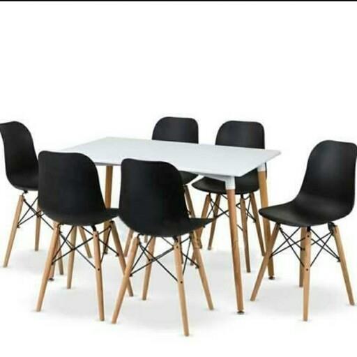 میز و صندلی غذاخوری سفید و مشکی شش نفره(پس کرایه)