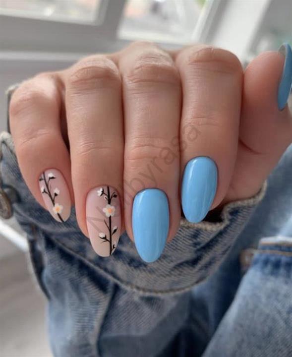 ناخن مصنوعی راسا مدل آبی گل بابونه